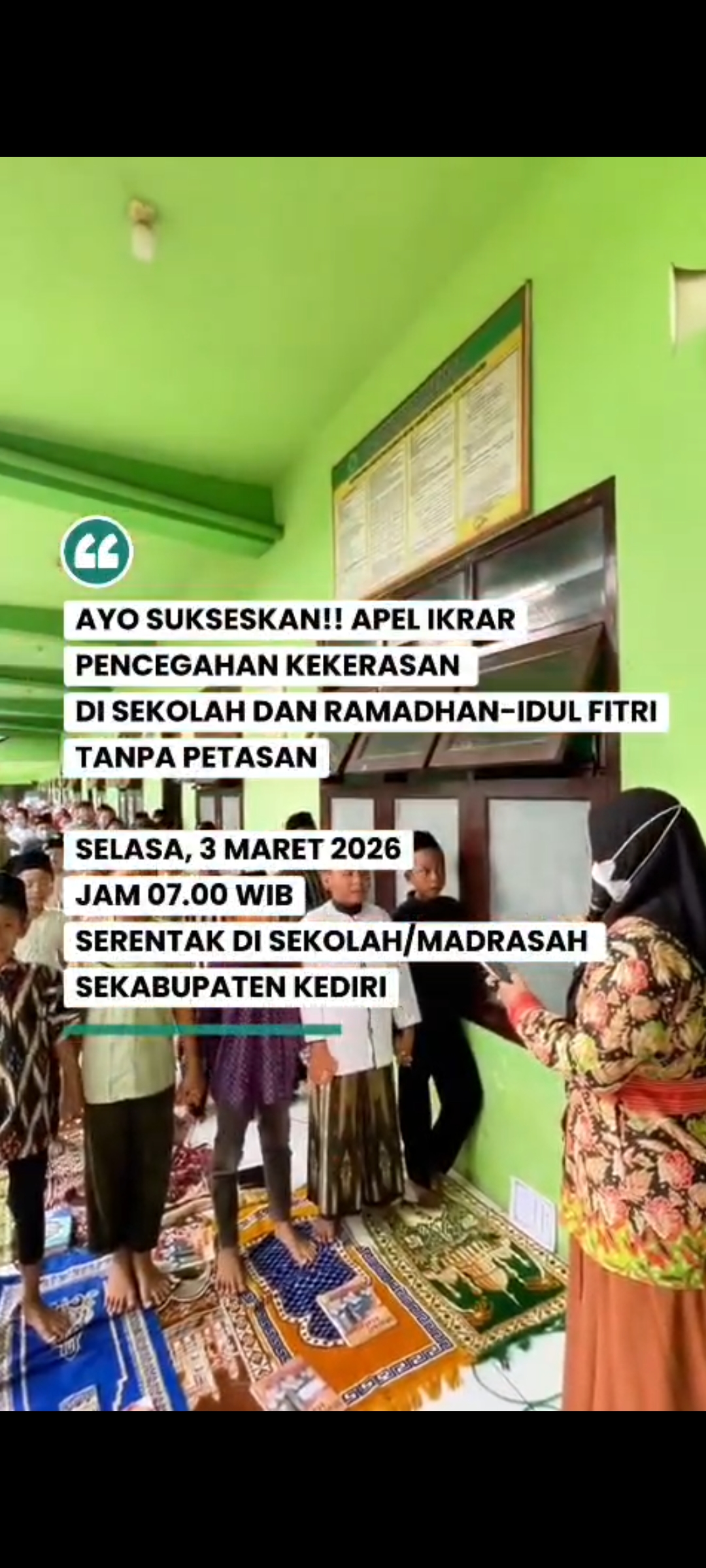 Dengan semangat kebersamaan, Kabupaten Kediri berkomitmen mewujudkan sekolah yang ramah anak dan suasana Ramadan yang aman, nyaman, serta penuh berkah tanpa petasan.