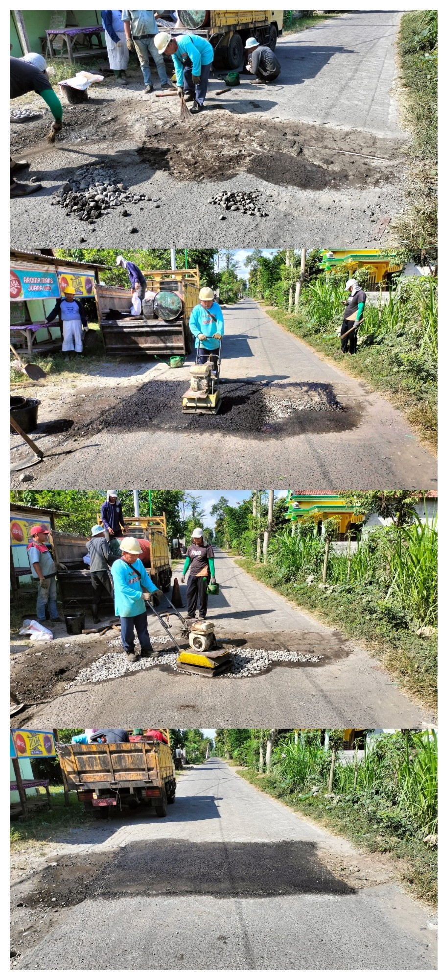 Kegiatan pemeliharaan yang dilaksanakan mencakup penanganan kerusakan ringan seperti tambal sulam pada badan jalan yang berlubang maupun retak, pembersihan bahu jalan, serta perbaikan saluran drainase di sepanjang ruas tersebut.