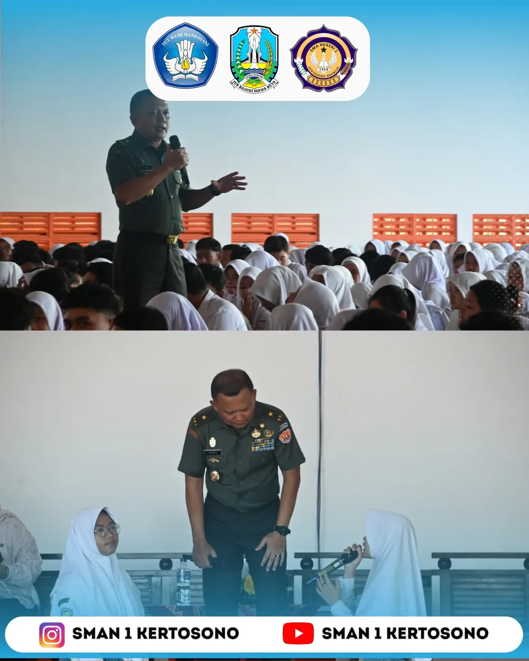 Nganjuk, FACTUALINDONESIA.COM– SMAN 1 Kertosono mendapat kehormatan istimewa dengan hadirnya Staf Khusus Kepala Staf Angkatan Darat (Kasad), Brigjen Hari Mulyanto, M.Sc., yang memberikan arahan inspiratif kepada seluruh siswa. Kegiatan ini berlangsung di Aula Widya Graha dan menjadi momen berharga untuk menumbuhkan semangat, disiplin, serta motivasi dalam meraih masa depan. Senin, (30/09/2025)